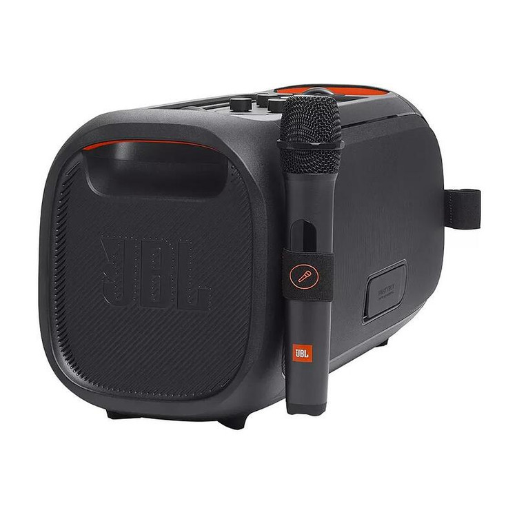 کاربران با امکان انتخاب حالتهای مختلف رقص نور میتوانند حال و هوای متفاوتی برای دورهمیهای خود ایجاد کنند. همراه با اسپیکر نیز یک میکروفون بلوتوثی با حداکثر برد 10 متری در اختیار کاربران قرار میگیرد تا بتوانید لذتی دوچندان از گوش کردن به موسیقی برده و با پشتیبانی از قابلیت Karaoke، دنیای خوانندگی را نیز تجربه کنید. خوشبختانه، کلیدهای تعبیهشده در بخش بالایی کمک میکنند تا کنترل خوبی روی میکروفون و صدای تولیدشده داشته باشید.