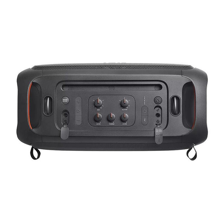 اسپیکر JBL PartyBox on the go در بخش داخلی، بلندگوهایی قدرتمند با توان خروجی کل 100 واتی دارد تا صدا با حجمی بسیار زیاد و البته وضوحی عالی پخش شود. جی بی ال همچنین از فناوری Bass Boost در این محصول استفاده کرده تا اسپیکر، بیس عمیقتری پیدا کند.