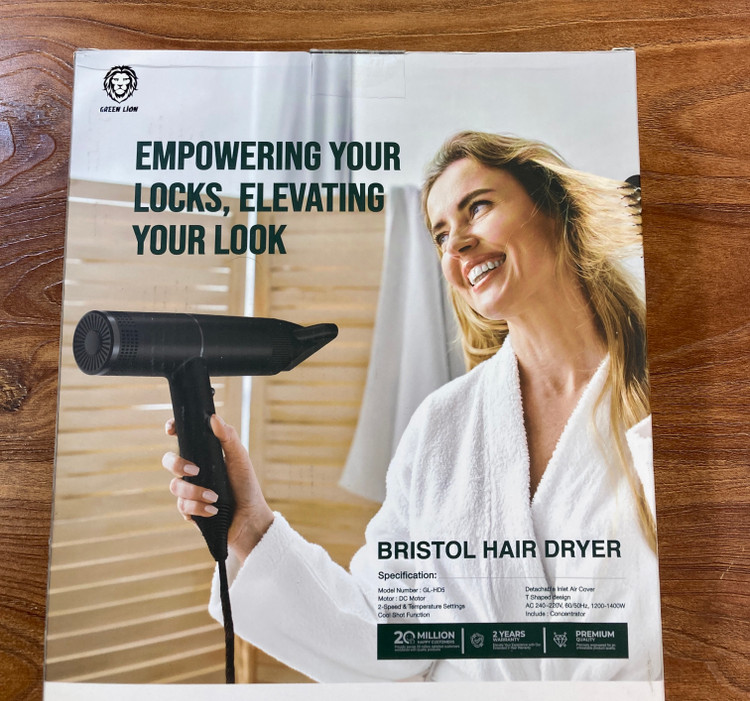 این محصول سشوار سبز Green Lion Bristol Hair Dryer برای مراقبت از موهای شما بسیار مناسب است. این سشوار با دقت و عملکرد بهینه ساخته شده است. این دستگاه با ولتاژ 220-240v~50-60Hz کار می کند و دارای محدوده توان 1400 وات است.