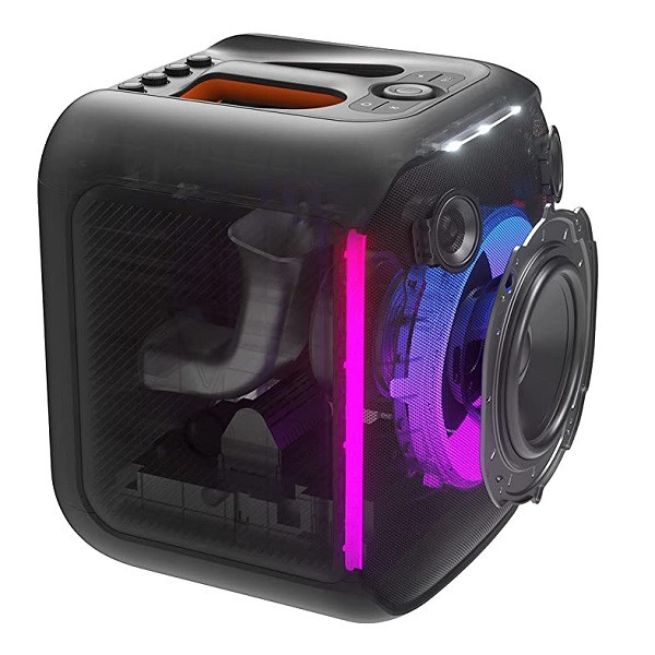 اسپیکر جی بی ال JBL PartyBox Encore Essential از طریق ووفر 5.25 اینچی و توییترهای دوگانه 1.75 اینچی خود، 100 وات صدای JBL Original Pro با باس عمیق تولید می کند. با کابل AUX یا فلش مموری هم میتوانید از موسیقی لذت ببرید، حلقه یکپارچه چراغهای LED رنگی با موسیقی همگامسازی میشود و فلاش میزند. برای مهمانیهای بزرگتر، میتوانید دو بلندگوی PartyBox را بهصورت بیسیم با True Wireless Stereo (TWS) جفت کنید تا صدای و بلندتری داشته باشید.