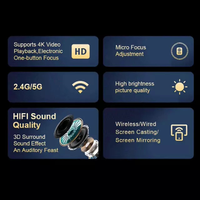 یکی از ویژگیهای منحصر به فرد این پروژکتور، کیفیت صدای HiFi آن است. با بلندگوی داخلی 3 وات، نیازی به خرید بلندگوی جداگانه نخواهید داشت. این ویژگی به شما این امکان را میدهد که تجربهای کامل از تماشای فیلمها داشته باشید و از صداهای واضح و با کیفیت لذت ببرید.