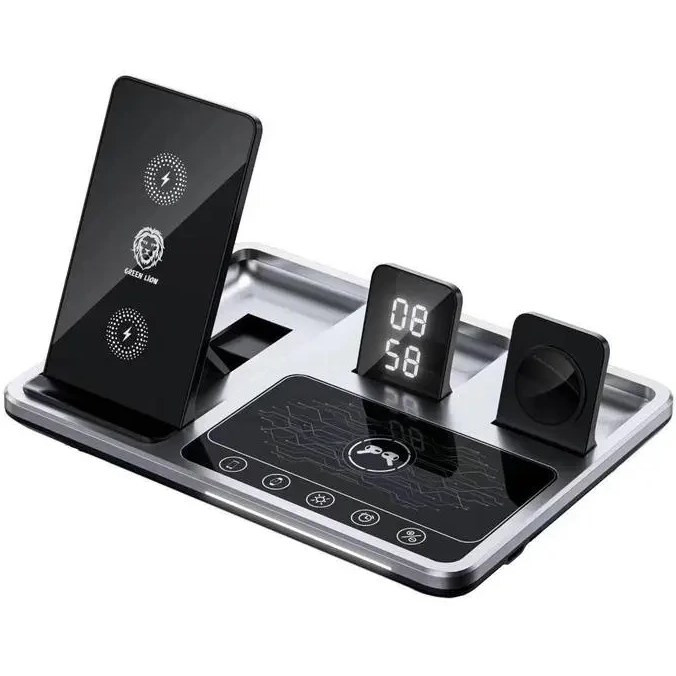 قابلیت های ویژه: سنسور دما جهت آسیب نرسیدن به دستگاه ، شیفتر مکانیکی استند شارژ موبایل لمسی ، شارژ همزمان ایرپاد گوشی و ساعت
