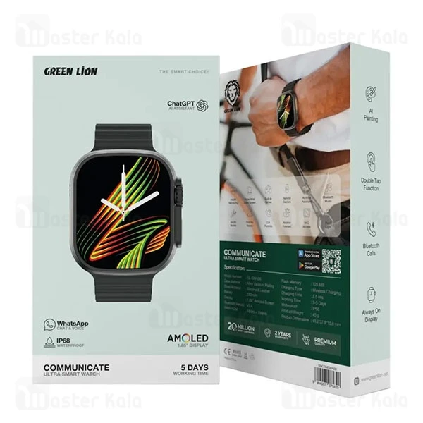 ساعت هوشمند گرین لاین، Green Lion Communicate Ultra، ساعت هوشمند مکالمهای، ساعت هوشمند ضد آب IP68، ساعت هوشمند بلوتوثی، ساعت هوشمند مدرن، ساعت هوشمند AI