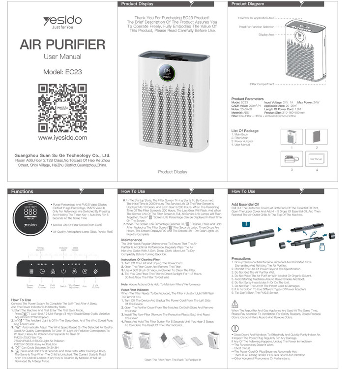🍃 دستگاه تصفیه کننده هوا یسیدو مدل YESIDO EC23