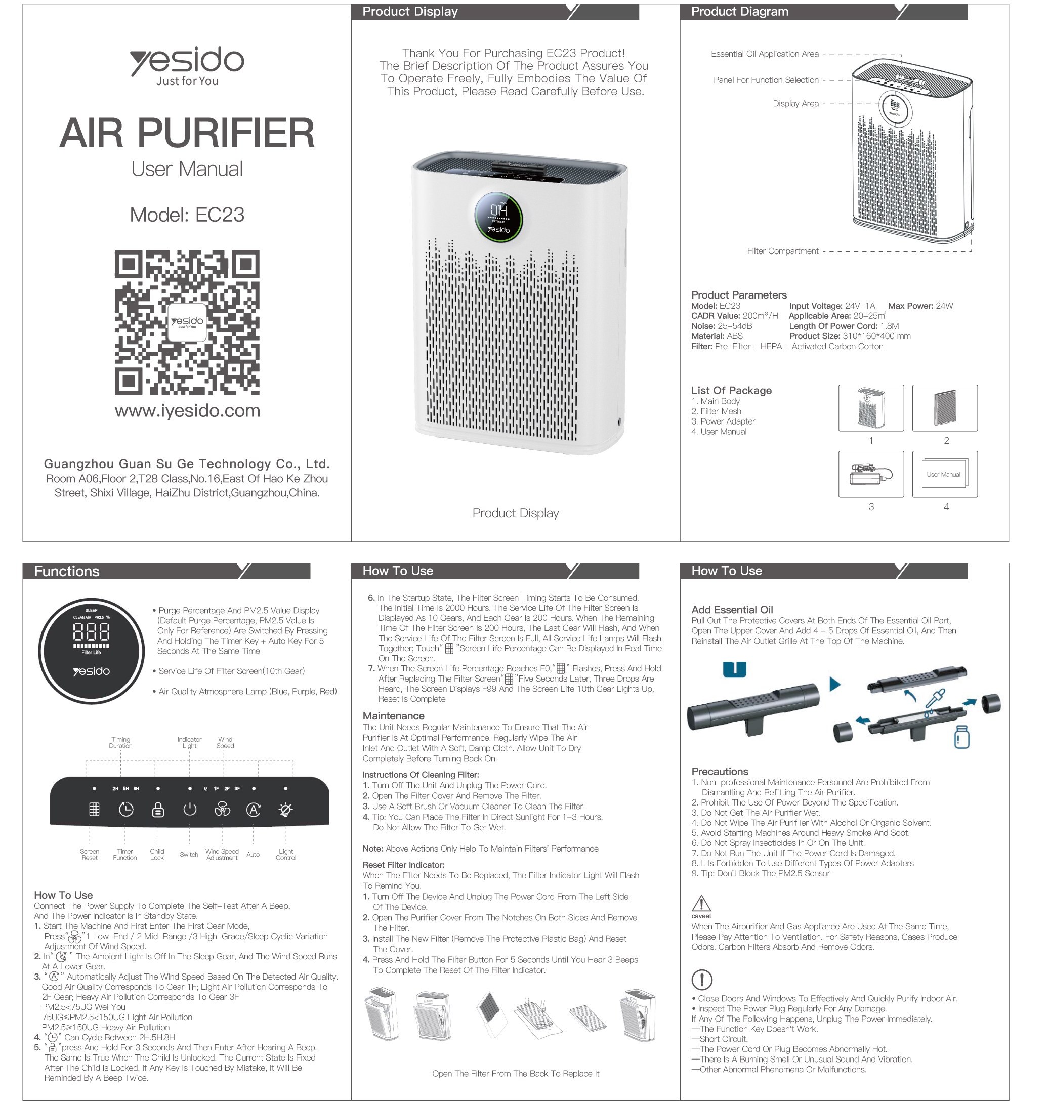 🍃 دستگاه تصفیه کننده هوا یسیدو مدل YESIDO EC23