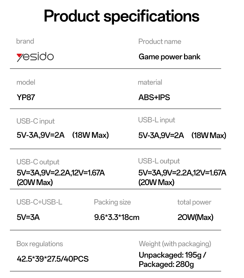 پورت خروجی: دو عدد typ-c