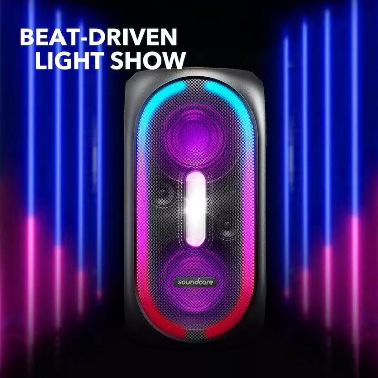 اسپیکر ANKER مدل SoundCore Rave Plus A3391H12 قدرت باس بسیار بالایی دارد و میتوانید از پخش صدای با کیفیت آن در جشنها و مهمانیهایتان استفاده کنید. اگرچه این اسپیکر قابل حمل است اما بیشتر برای قرار گرفتن روی زمین طراحی شده است و وزنی معادل 9.8 کیلوگرم دارد. SoundCore Rave Plus A3391H12 سیستم صوتی بسیار خوبی دارد که از لرزش صدا جلوگیری میکند. بدنه SoundCore Rave Plus A3391H12 بسیار مقاوم و از جنس پلاستیک و سیلیکون است، بنابراین در هنگام جابهجایی نگران آسیب دیدن آن نباشید.